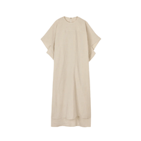 This dress combines a neutral, understated colour palette with an oversized, architectural silhouette, creating a refined and highly versatile wardrobe staple.