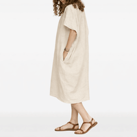 The Sofie D’Hoore oversized dress in Natural is designed for effortless wear, balancing volume with simplicity. Style it with minimal sandals for relaxed daytime dressing, or pair with tonal accessories and leather footwear to elevate the silhouette for more refined occasions.