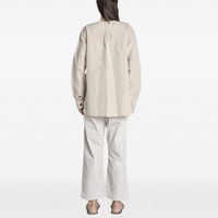 This Sofie D’Hoore Henley shirt features a relaxed, wide silhouette with a round neckline and long sleeves, finished with a clean button front closure. Crafted from a breathable linen and cotton blend, the natural-toned fabric offers a lightweight, airy feel that enhances the fluid drape and ease of this Sofie D’Hoore shirt.
