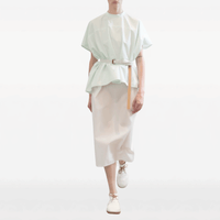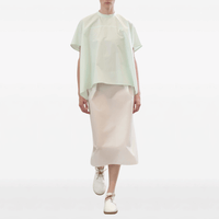 The Sofie D’Hoore cotton top in Mint is designed with a gently flared hem and a longer back length, creating fluid movement and dimension from every angle. Style it with neutral tailoring for a refined, modern look, or pair with soft tonal pieces for an understated, directional outfit.